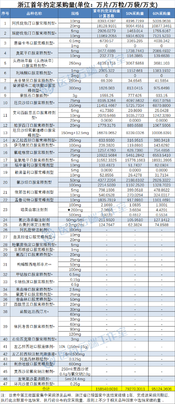 約定采購(gòu)量:各品種首年約定采購(gòu)量按以下規(guī)則確定:實(shí)際中選企業(yè)為該地國(guó)家集采同品種中選企業(yè)的,為首年約定采購(gòu)量計(jì)算基數(shù)的60%;抗菌藥物,以及實(shí)際中選企業(yè)非該地國(guó)家集采同品種中選企業(yè)的,為首年約定采購(gòu)量計(jì)算基數(shù)的50%。各省采購(gòu)量具體詳見文末附表。