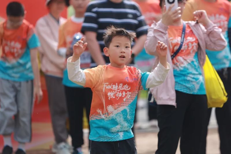 緊接著,一場精彩的熱身運(yùn)動開始了,參賽者們身著統(tǒng)一的運(yùn)動服裝,精神抖擻,在領(lǐng)隊的帶領(lǐng)下跟著節(jié)奏拉伸肌肉、調(diào)整呼吸,為即將到來的比賽做好充分的準(zhǔn)備。
